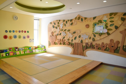 ライブラリーの森(お話コーナー) お母さんやお父さんがお子さんへ本を読んであげられるお話コーナーです。隣には授乳室も用意しています。