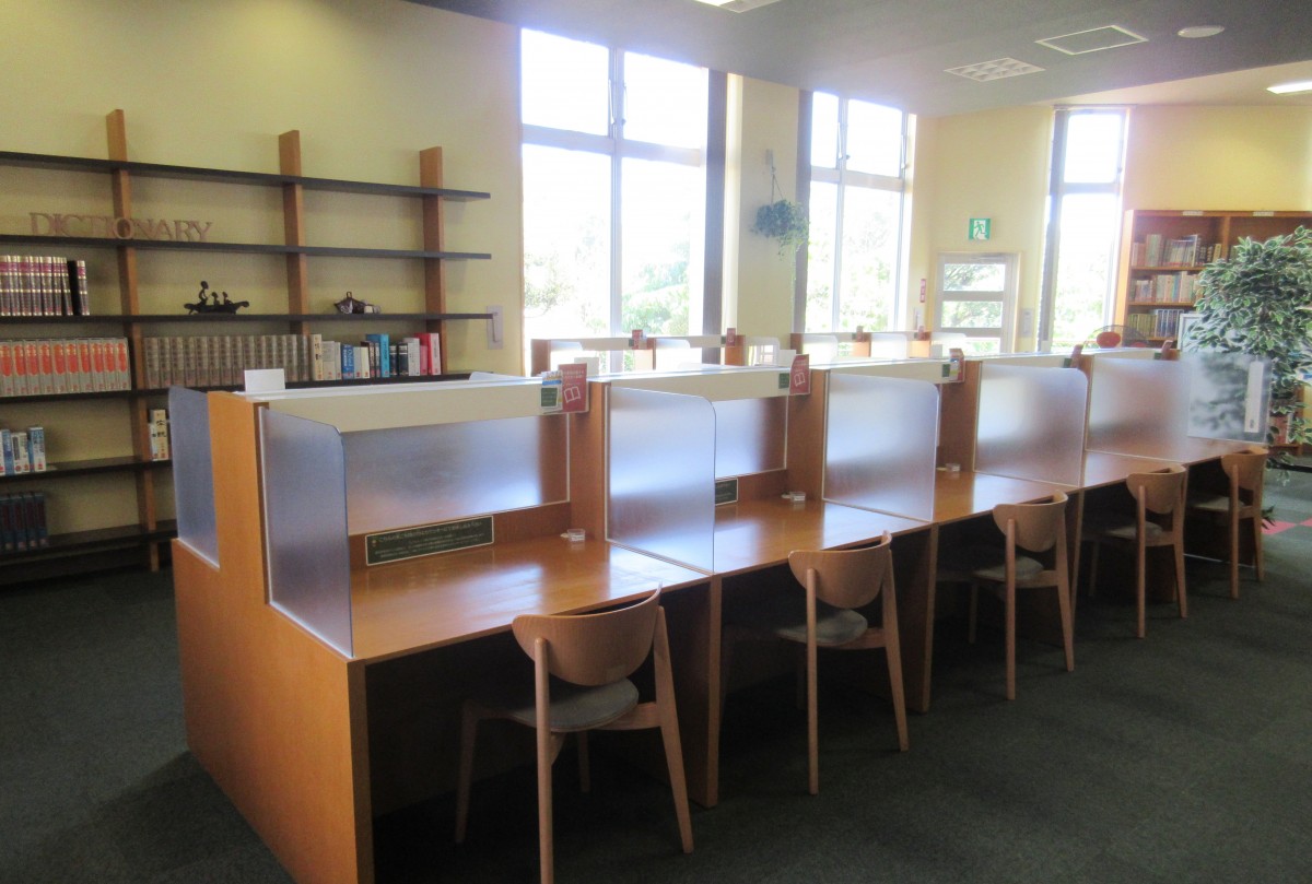 レファレンスコーナー(レファレンス席) 自習・調べ物学習にご利用頂けます。お申込はあやかりの杜図書館のカウンターにて行ってください。