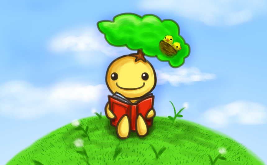 頭にはえた木の陰で読書をするのが大好きな妖精。
